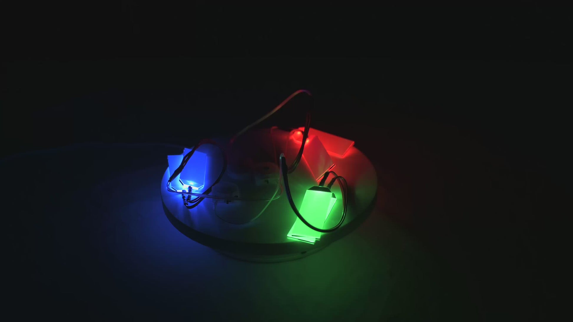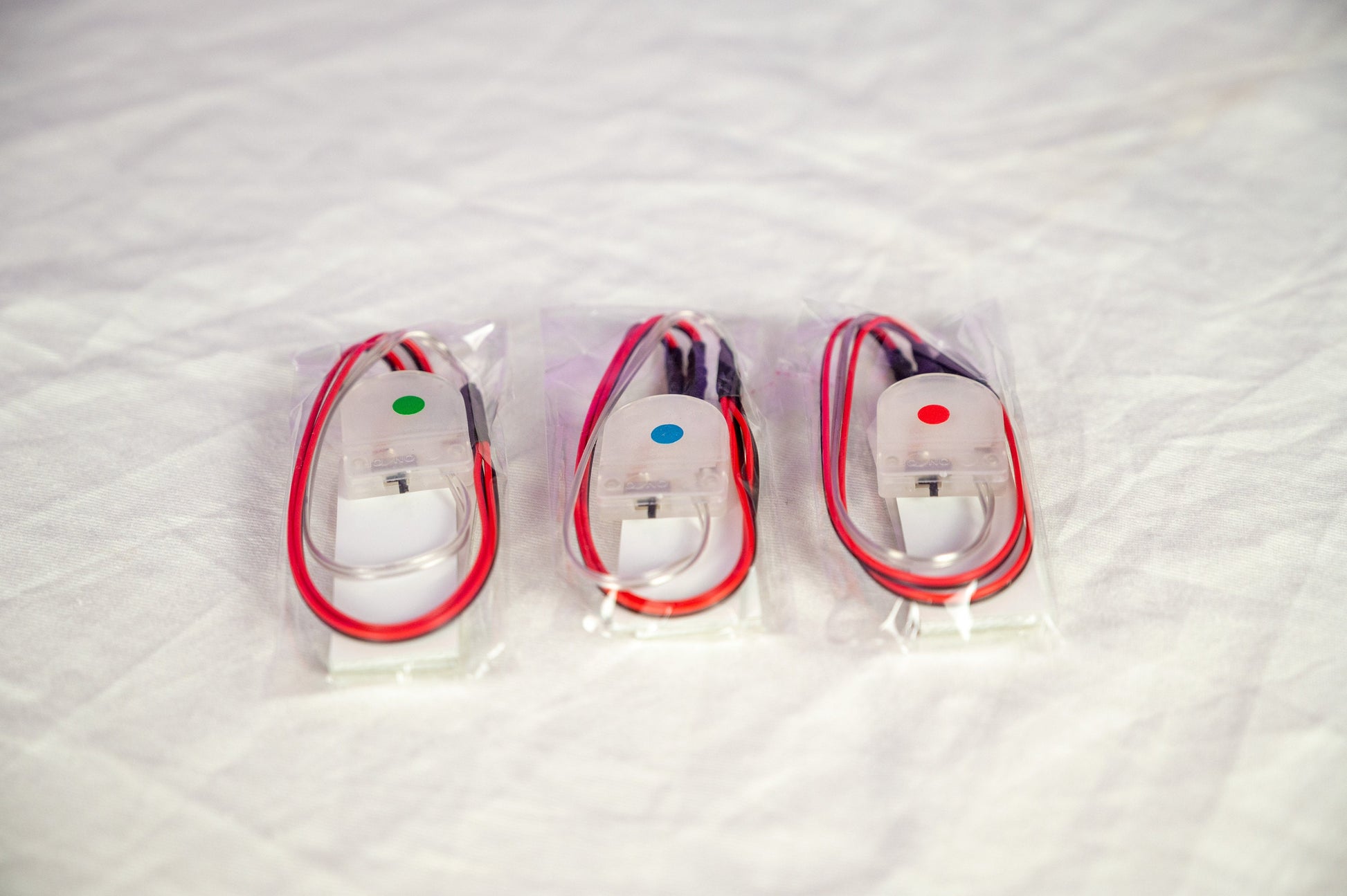 These Lights come as either Red Blue or Green rigid Lights. The LEDS shine through a transparent square piece of plastic which is great for masks or other cosplay items where light is required on both sides of the item. A white piece of plastic is on each light that must be removed before use.
